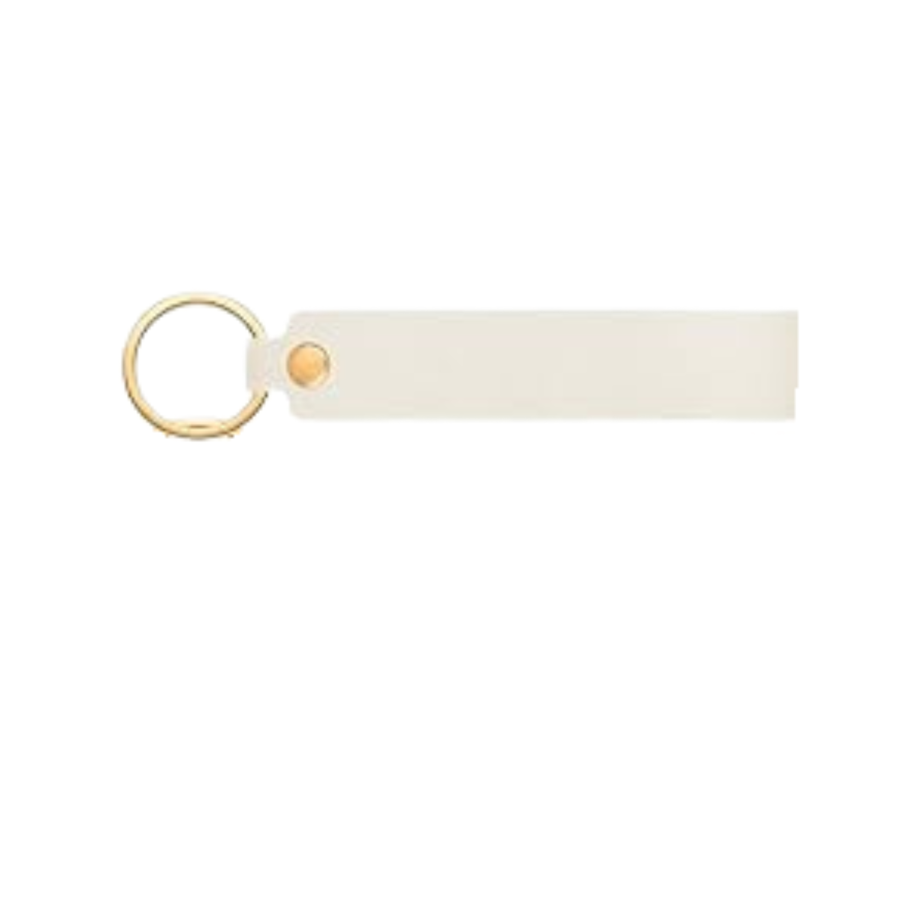 This personalizable key chain is crafted from genuine leather and measures around 5.6 x 0.8 inches.